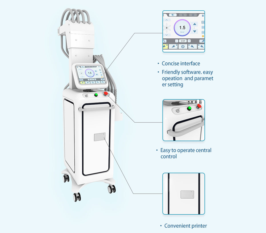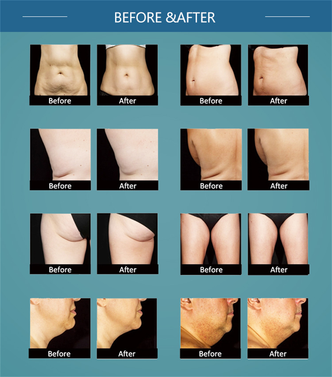 Werksbeginsel: Wanneer die vetselle by 42°--45° is, sal hulle stadig oplos, verminder en ontbind.Deur die laserenergie van die behandelingsonde aan te pas, word die temperatuur van die behandelingsposisie tot 42°C tot 47° verhoog C om die vetselle te vernietig, sal die omliggende weefsel nie tydens die behandeling beskadig word nie, en die kontakverkoeling kan die gerief verbeter en die vel beskerm. Geen narkose word benodig vir die behandeling nie, dit voel amper gemaklik, geen herstelperiode na die operasie, geen massering nodig nie. Na die behandeling sal die liggaam mettertyd die beskadigde vetselle natuurlik metaboliseer en vernietig, en die beste resultate sal binne 6 tot 12 weke verkry word.