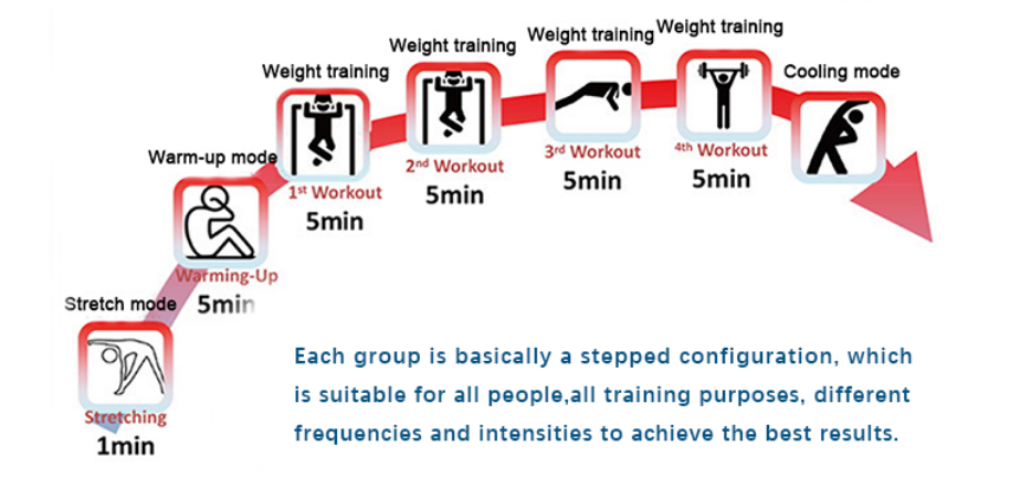 Всяка група е основно стъпаловидна конфигурация, която е подходяща за всички хора, всякакви тренировъчни цели, различни честоти и интензитети за постигане на най-добри резултати.