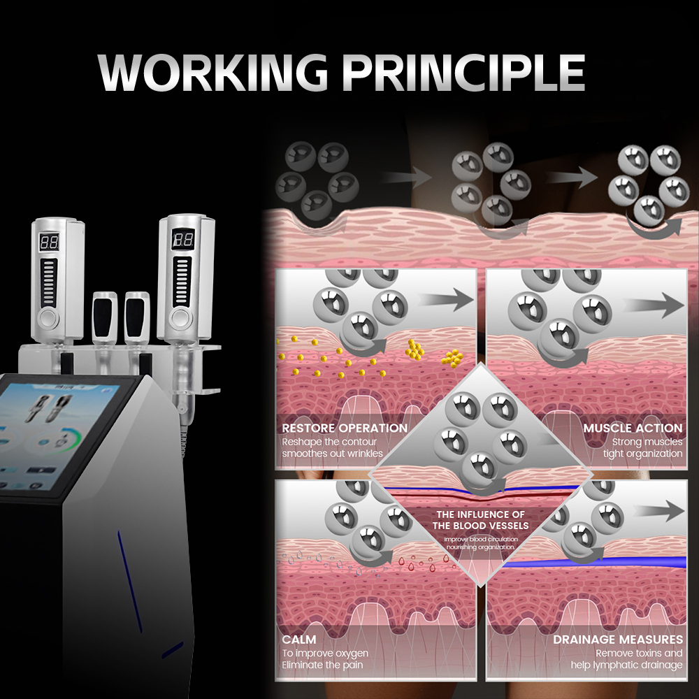 As the ball rotates and exerts pressure on the skin, it produces a "pulsation compression" effect, realizing continuous push-pull kneading reciprocating motion, and the tissue will experience some pressure And lifting action, will not squeeze or damage the skin, the tissue is exerted pressure to stretch the cells to naturally and deeply stimulate cell activity, blood flow and oxygenation, fat deposits are pressurized and thus loosened to finally decompose, reducing cellulite and Removes cellulite; also exerts pressure on deep muscle groups to fully soften and stretch,thereby reducing muscle stiffness and soreness, accelerating metabolism,eliminating stagnation and fluid accumulation, conditioning tissues and re-firming skin tissues, reshaping your body.