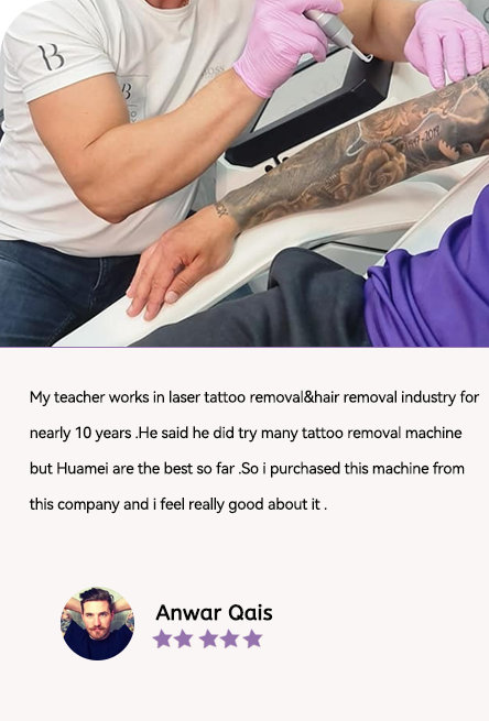 Pigments can absorb lasers of a specific wavelength. The pulse width of picosecond lasers is extremely short, and they can generate high energy in a very short time(picosecond level). After these high-energy lasers act on the pigmented area, the pigment particles absorb the laser energy, and the temperature rises sharply, causing the pigment particles to instantly shatter into tiny fragments. Subsequently, the body's own immune system will identify these tiny fragments as foreign substances and remove them, thereby achieving the effect of removing tattoos and pigments.